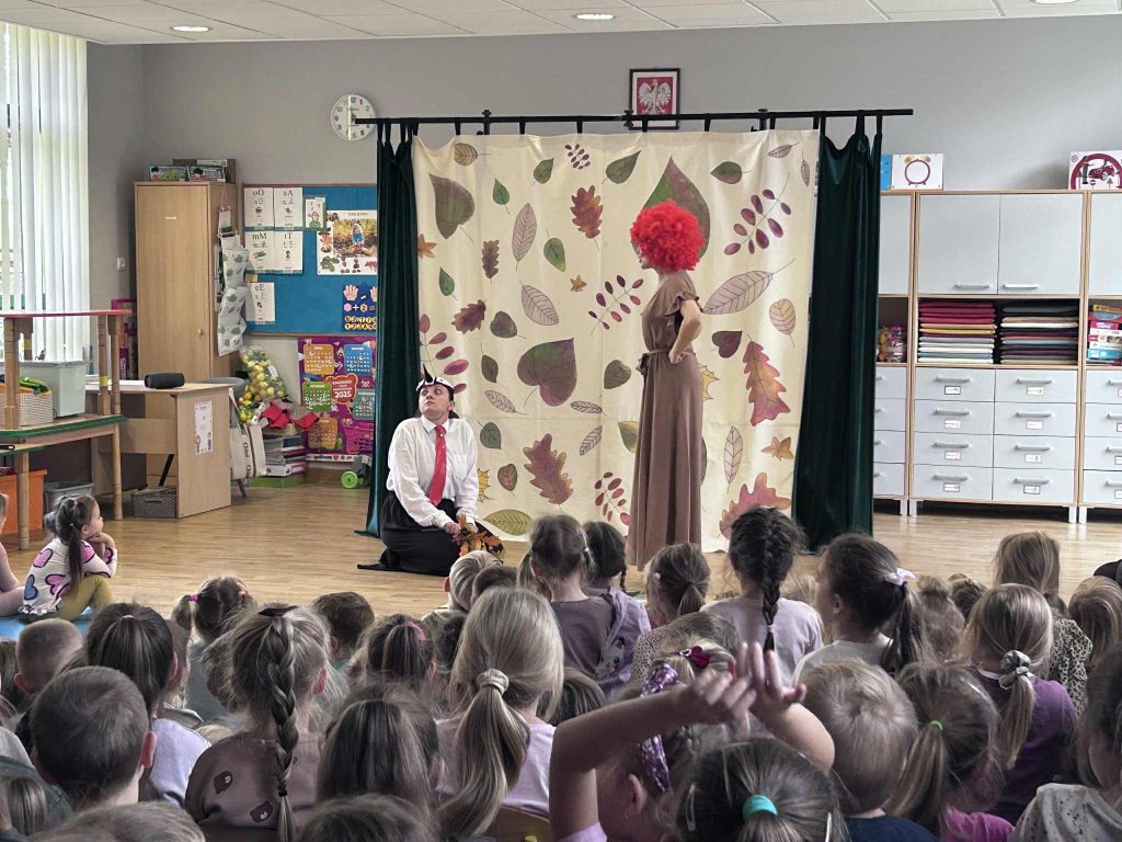 07.10. Jeżyki miały przyjemność brać udział w teatrzyku „Na Straganie” w wykonaniu pań z przedszkola. Mogły również same pobawić się w aktorów.