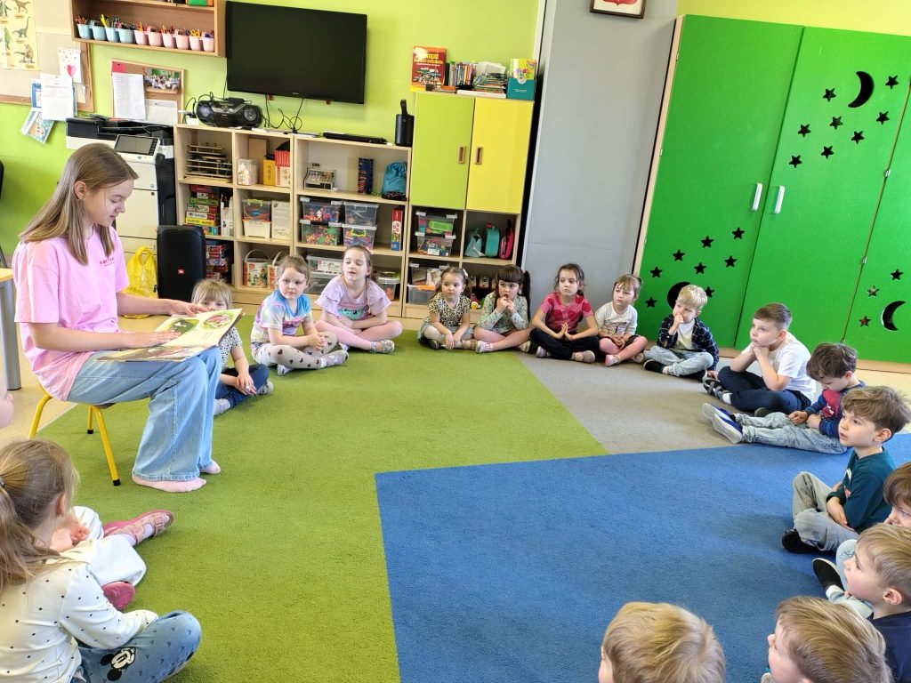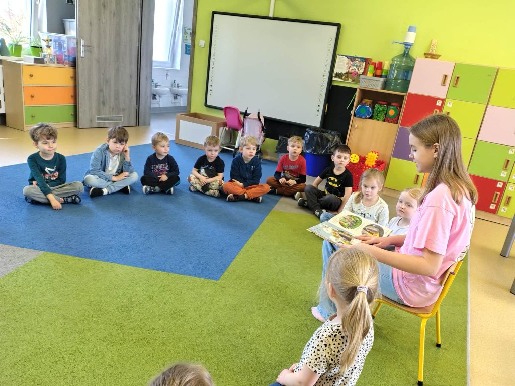 Czytanie dzieciom bajki przez siostrę jednej z dziewczynek z grupy SówekPrzez Zuzanna Dublas / 12 marca 2026 12 marca 2026