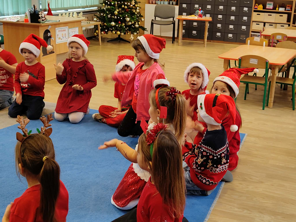 Z okazji Mikołajek dwie chętne dziewczynki z naszej grupy: Zoja i Zosia przygotowały i przeprowadziły wśród swoich rówieśników Mikołajkową gimnastykę. Brawo dla odważnych dziewczyn i czekamy na gimnastykę, którą przygotuje kolejna para ochotników 🙂
