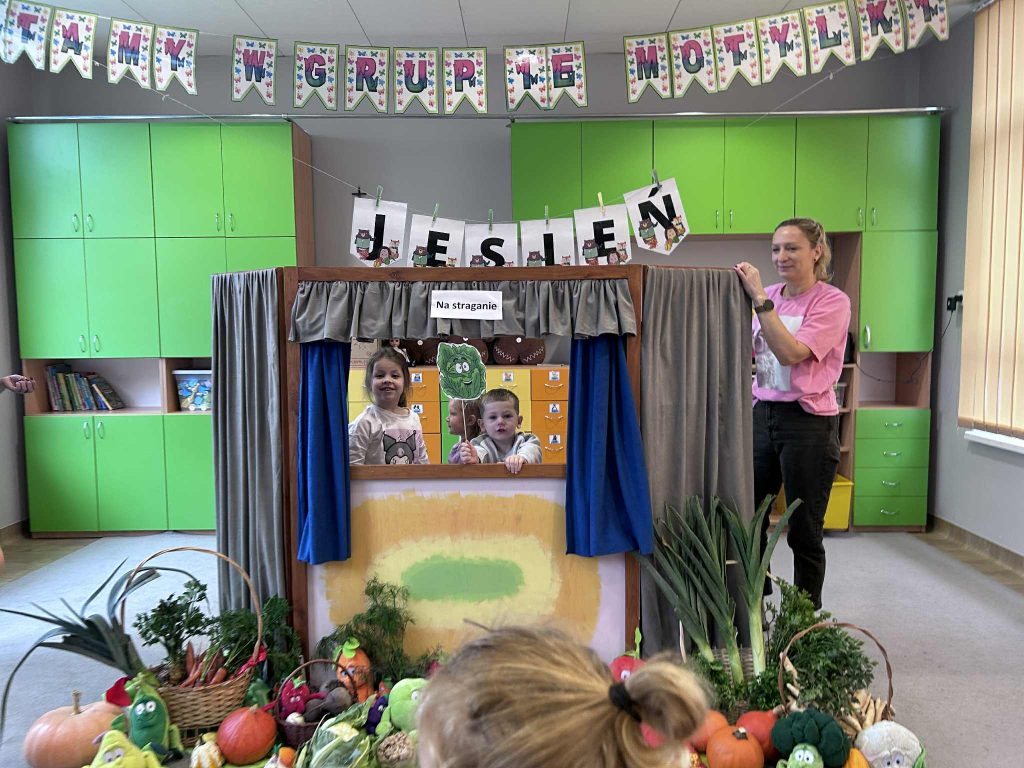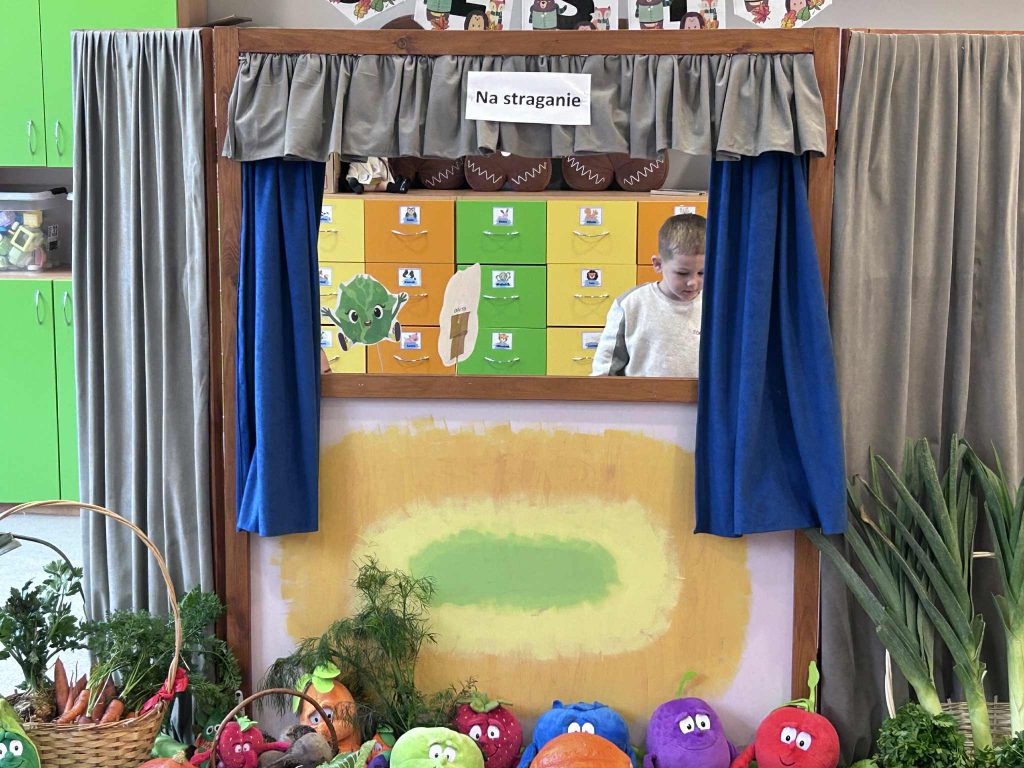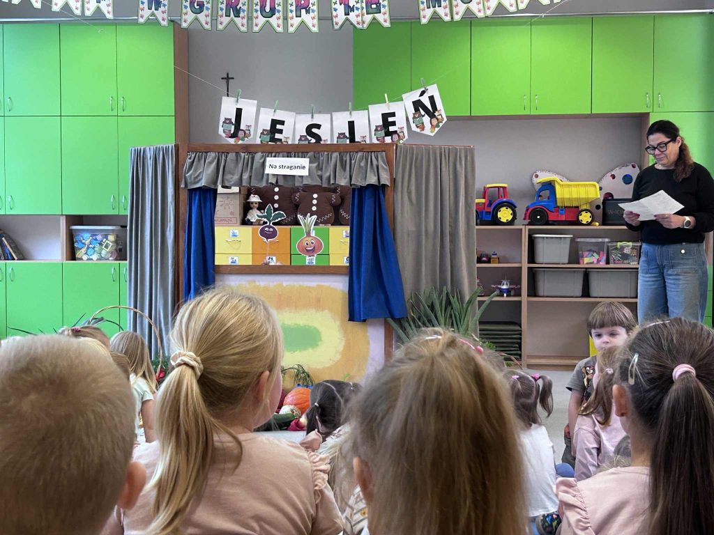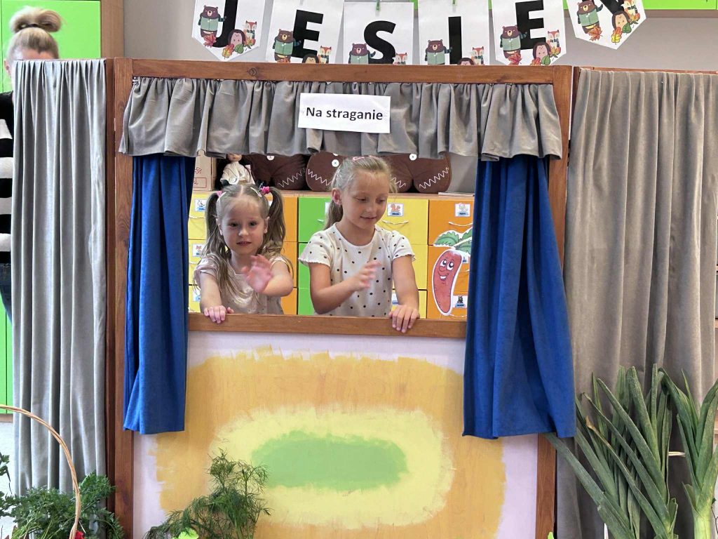 07.10. Jeżyki miały przyjemność brać udział w teatrzyku „Na Straganie” w wykonaniu pań z przedszkola. Mogły również same pobawić się w aktorów.