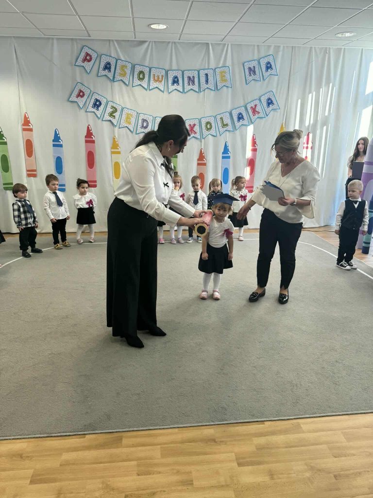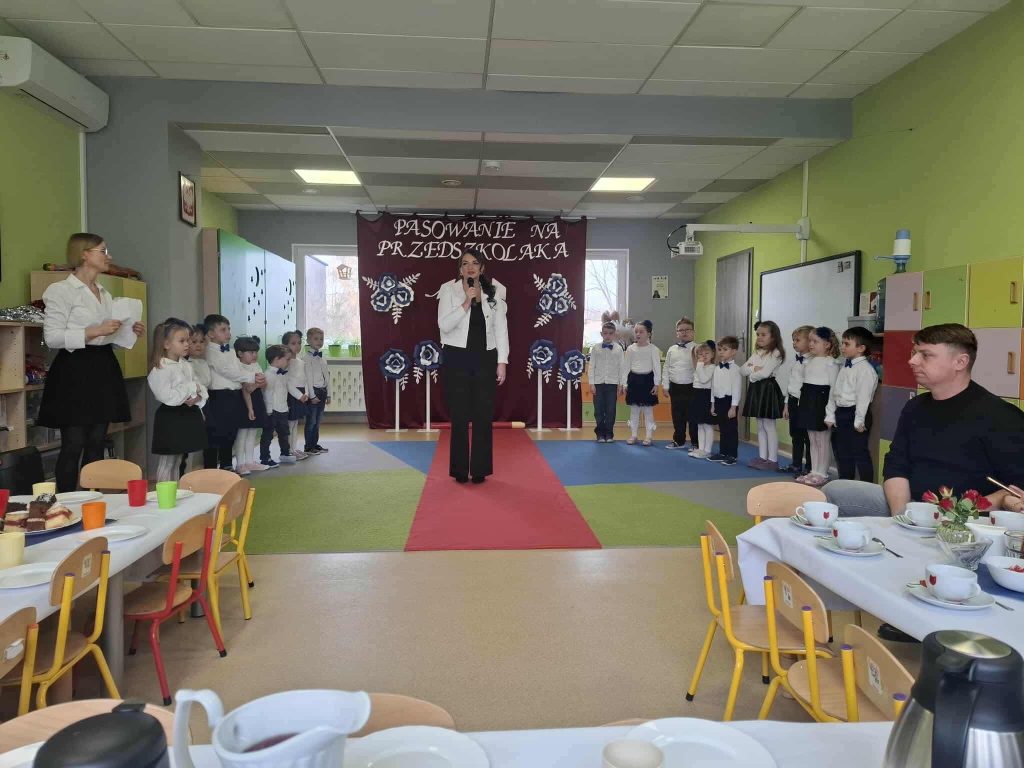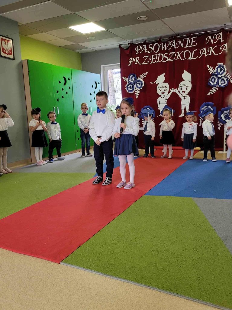 Uroczystość rozpoczęła się krótkim występem artystycznym przygotowanym przez dzieci. Przedszkolaki odważnie zaprezentowały wierszyki, piosenki oraz krótkie zabawy ruchowe, udowadniając, że świetnie czują się w swojej nowej roli.