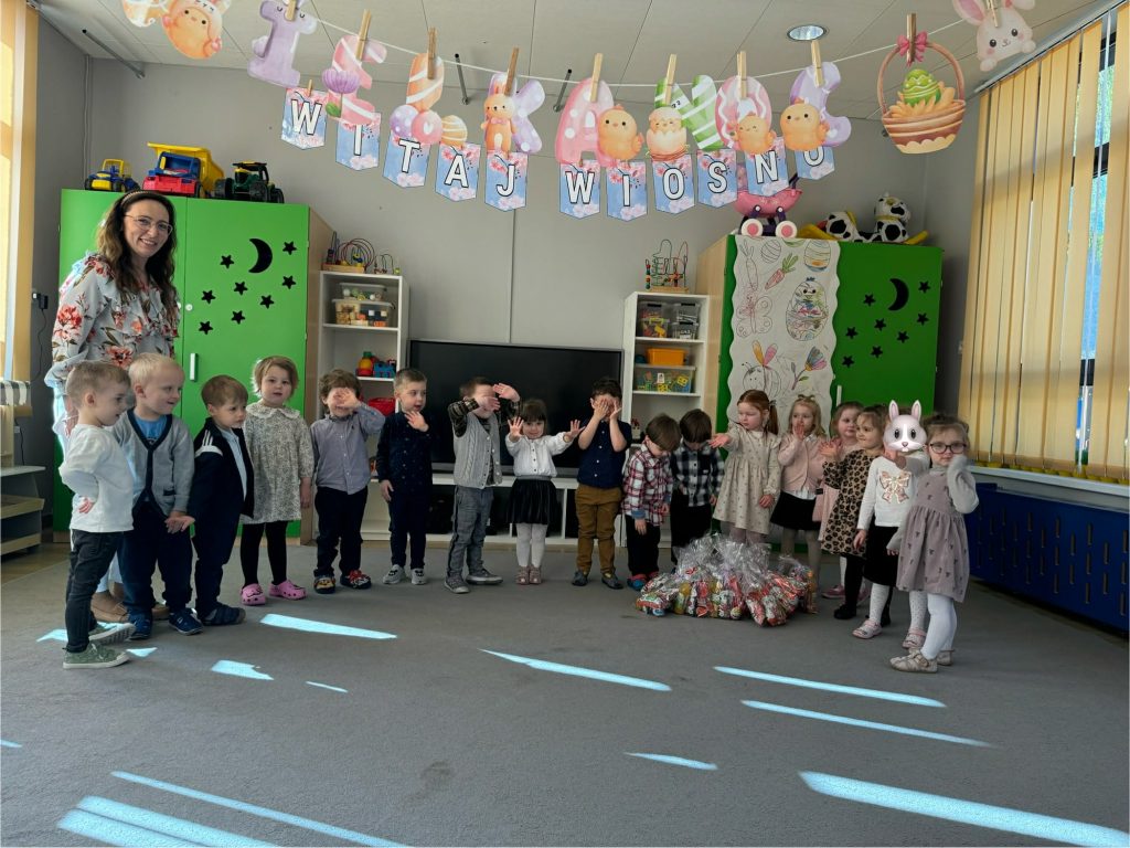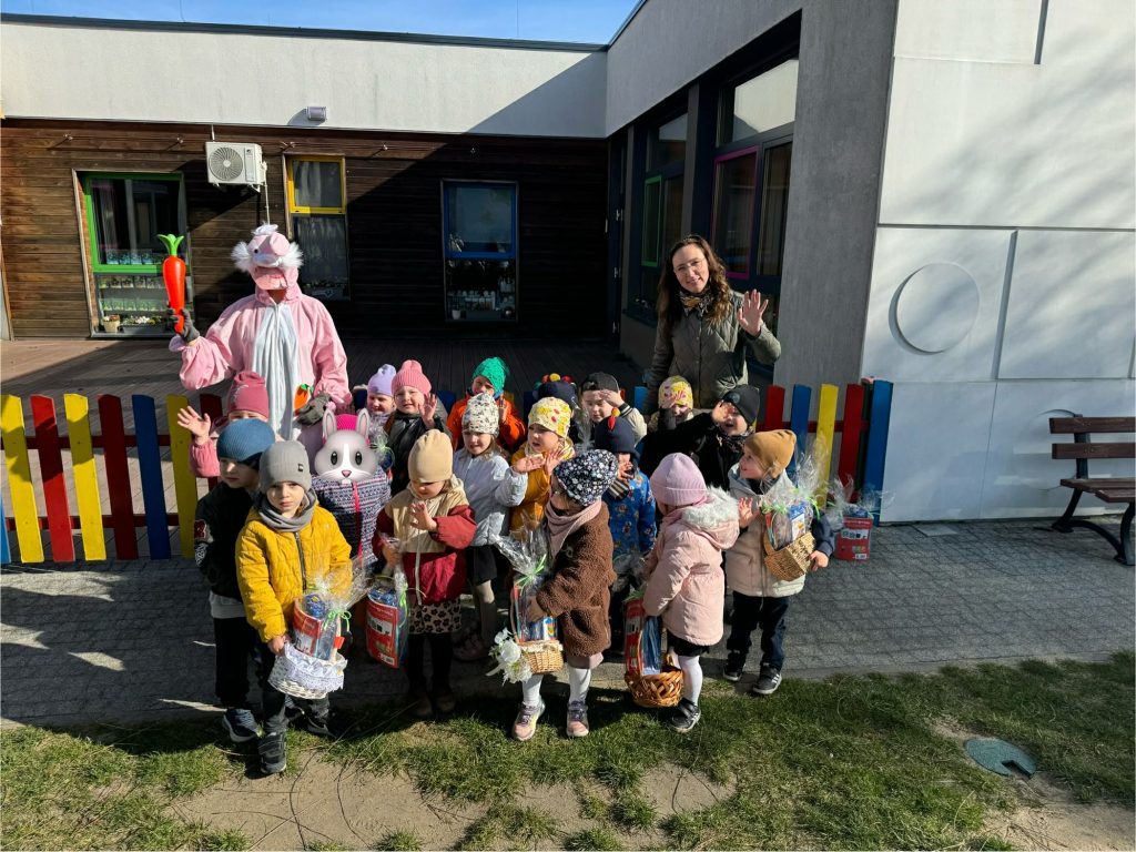Dzisiaj w naszym przedszkolu odbylo się śniadanie wielkanocne dla dzieci. Później wyruszyliśmy na plac zabaw w poszukiwaniu prezentów od zajączka. Każde dziecko otrzymalo piękną paczkę, która sprawila dużo radości. Dzieci mialy okazję przywitać się z zajączkiem wielkanocnym.