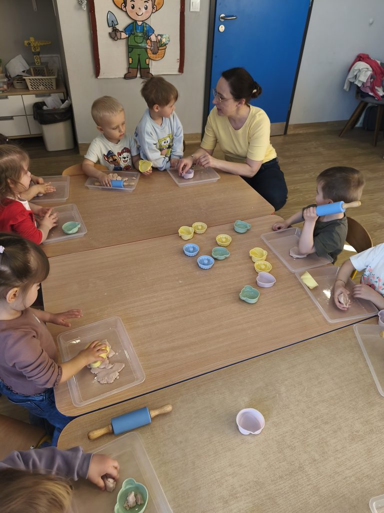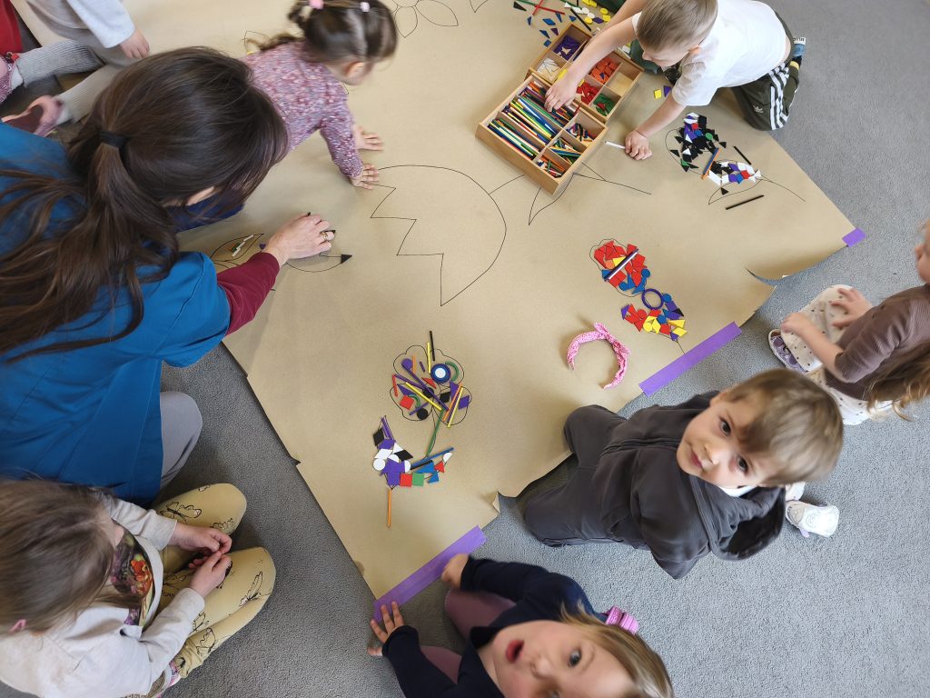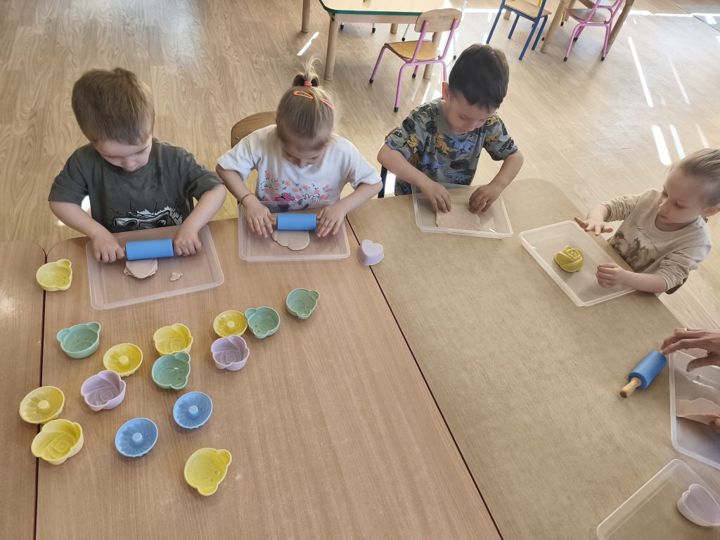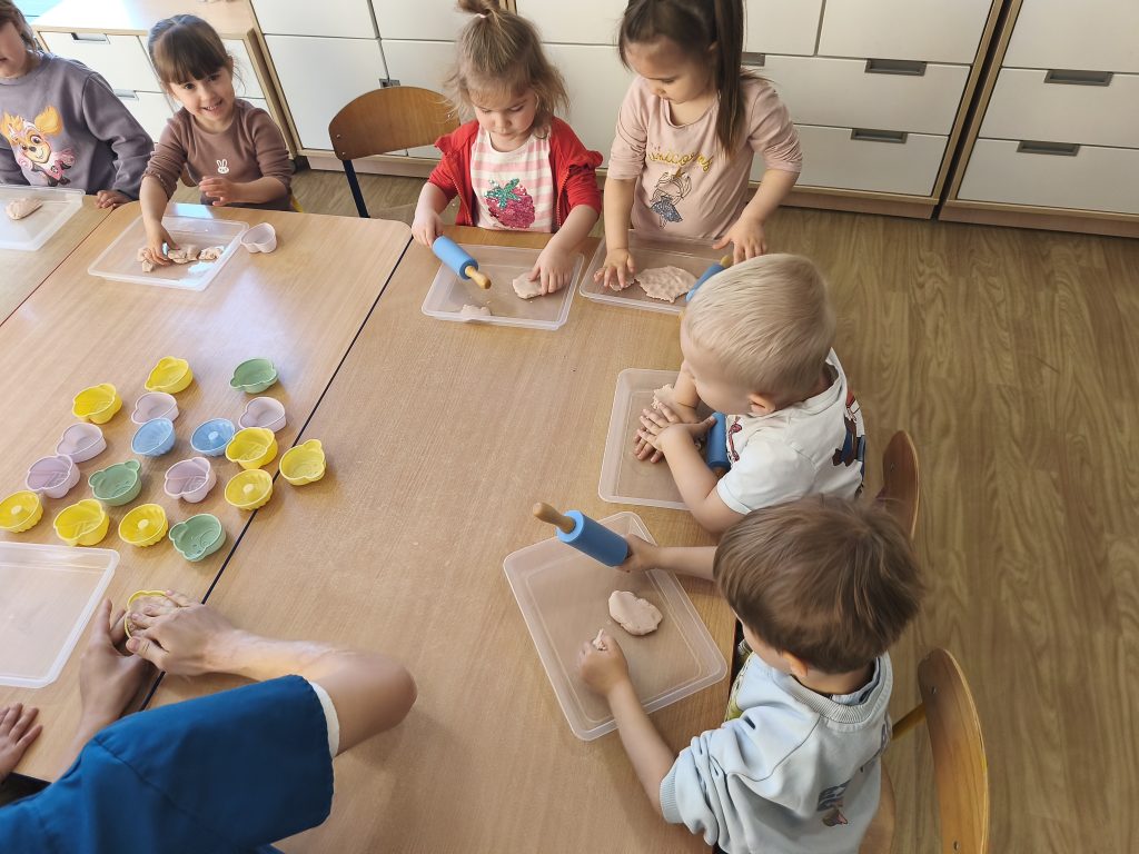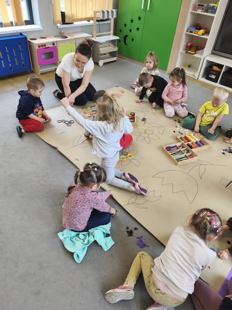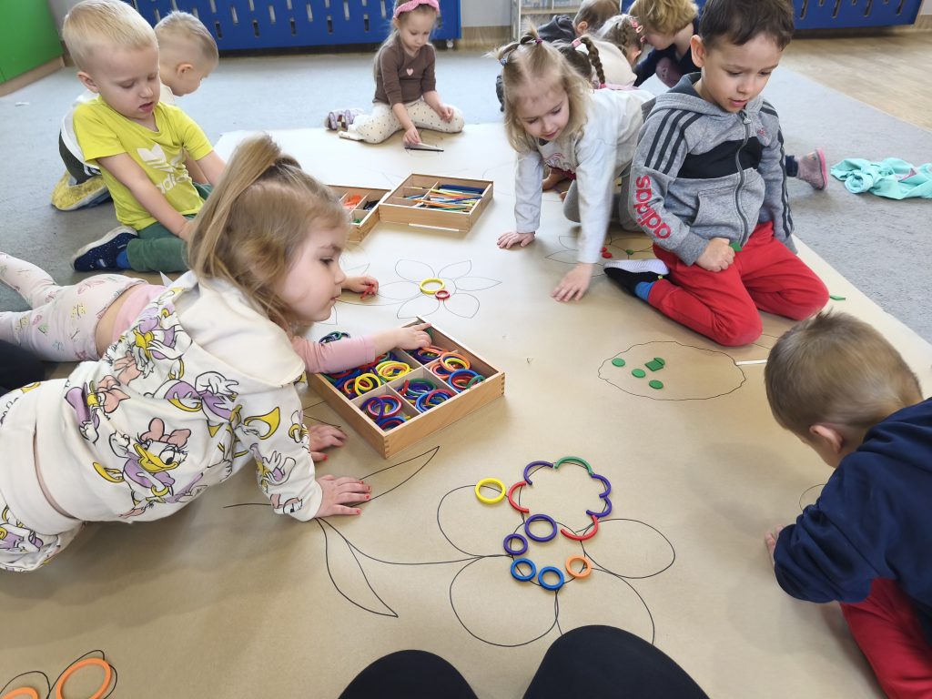 W tym tygodniu ukadaliśmy wiosenne kwiaty z darów Froebla, malowaliśmy- stemplowaliśmy folią bąbelkową oraz ćwiczyliśmy rączki poprzez zabawy sensoryczne z różnymi fakturami oraz wykonaliśmy domową ciastolinę.